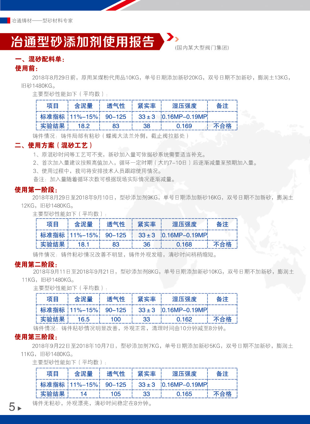冶通型砂添加劑使用報告